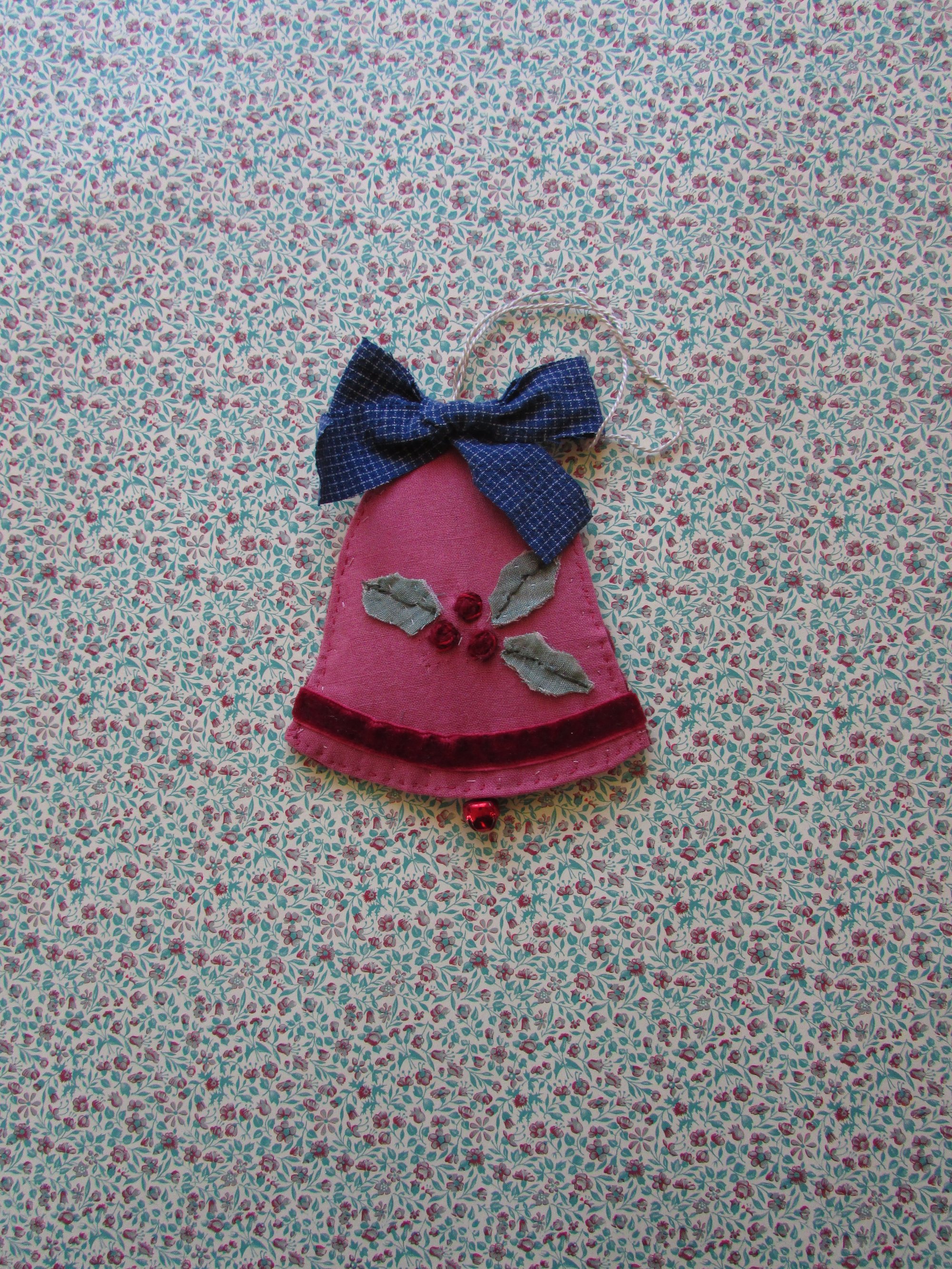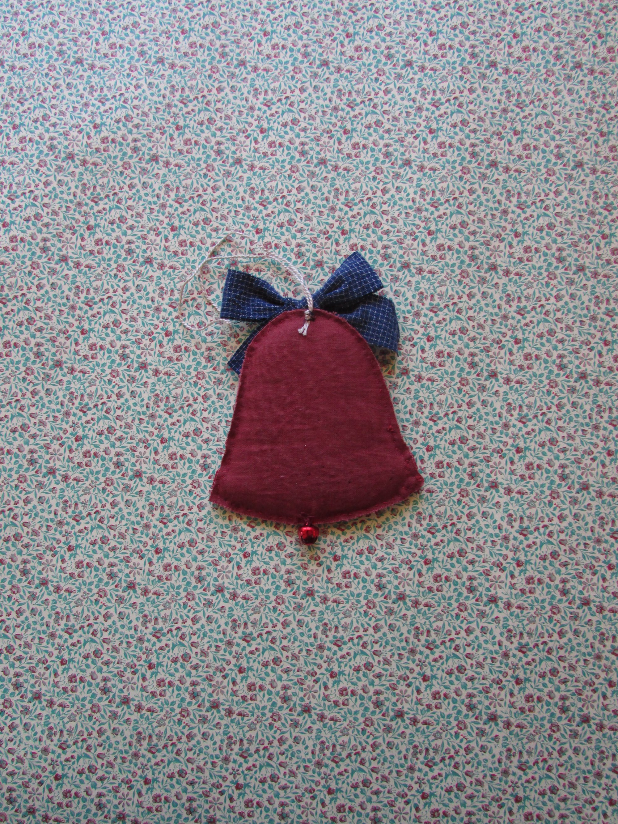 Christmas bell ornament with embroidery, handmade by me. Size 10 cm x 9 cm