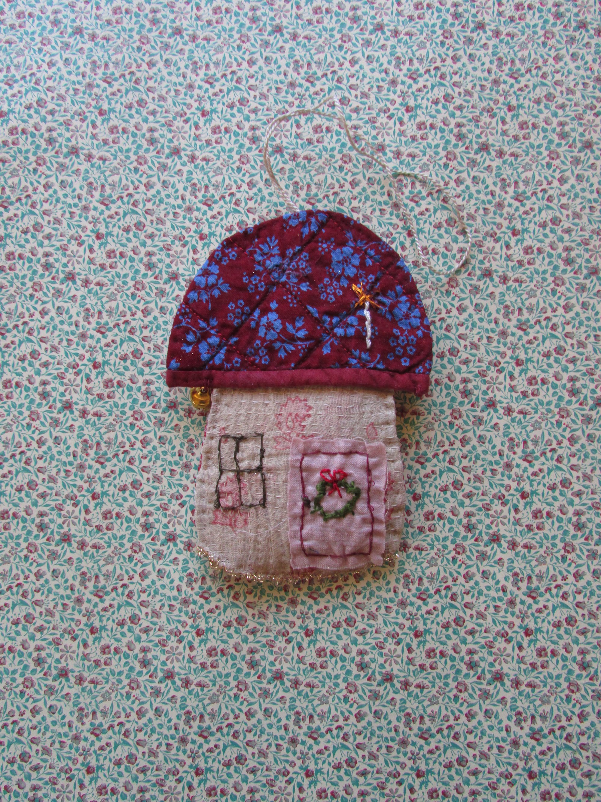 Mushroom house ornament, burgandy