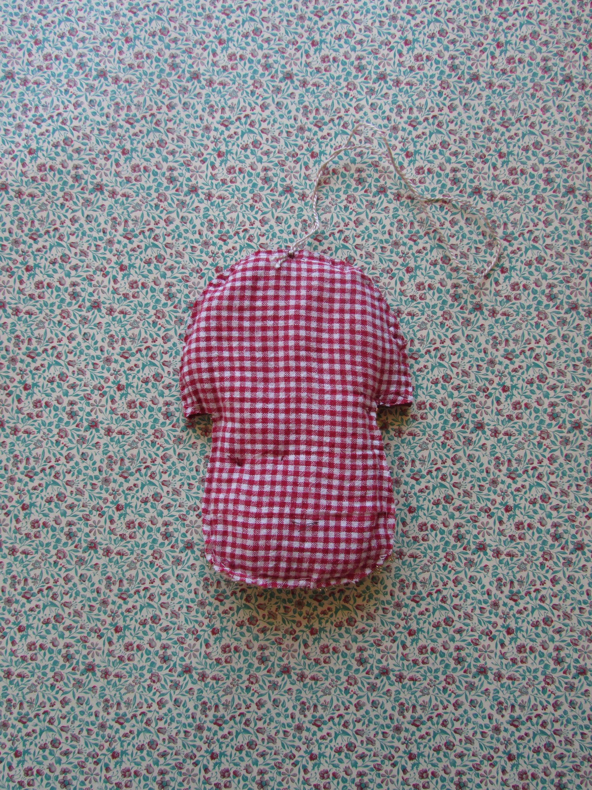 Christmas mushroom ornament with embroidery, handmade by me. Made with vintage fabric. Size 13 cm x 9 cm.